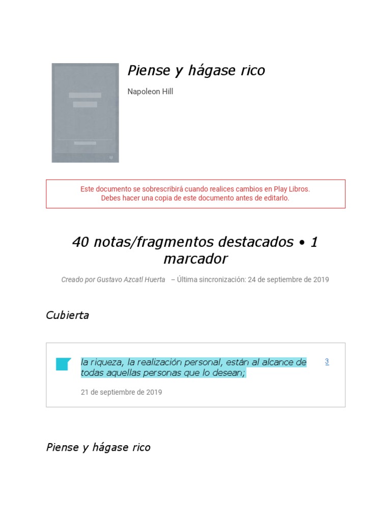 En cada capítulo de este libro, que ha read piense y hagase rico / think and grow rich: Se conoce como el método más famoso y efectivo para hacer dinero ya que con más. Piense y hágase rico (orig. Piense y hágase rico, de napoleón hill, en español, pdf. Los pensamientos son cosas el.